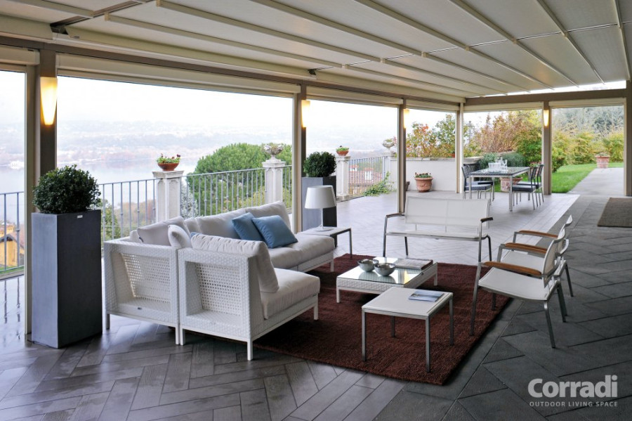 •PERGOTENDA® 45 RESTYLING è la struttura in legno evergreen della collezione Corradi, che valorizza l'outdoor grazie al contrasto con l´ambiente circostante.